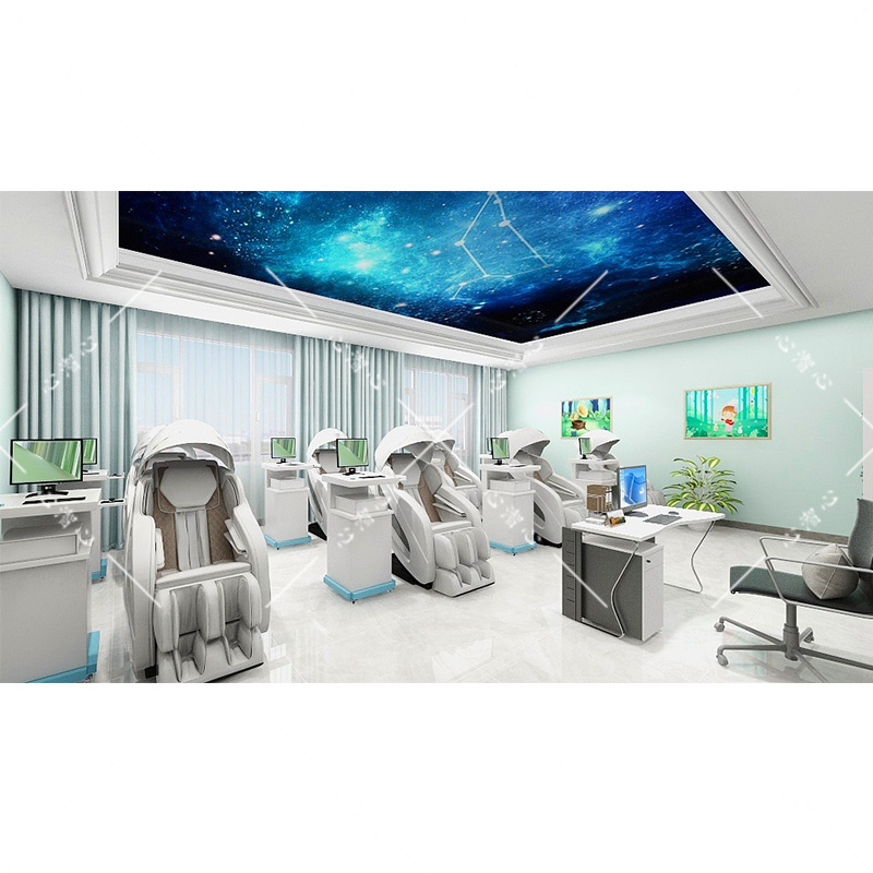 智能按摩减压舱智能检测身体体型,随身体的移动实时跟踪定位,随时关注来访者使用时的舒适状态,在技术手法、力度、速度上都能因人而宜随时调节,配合专业的身心反馈训练系统中的生理数据监测以及压力评估和训练放松模块,可以有效疏导来访者负面情绪,提高来访者情绪调节。